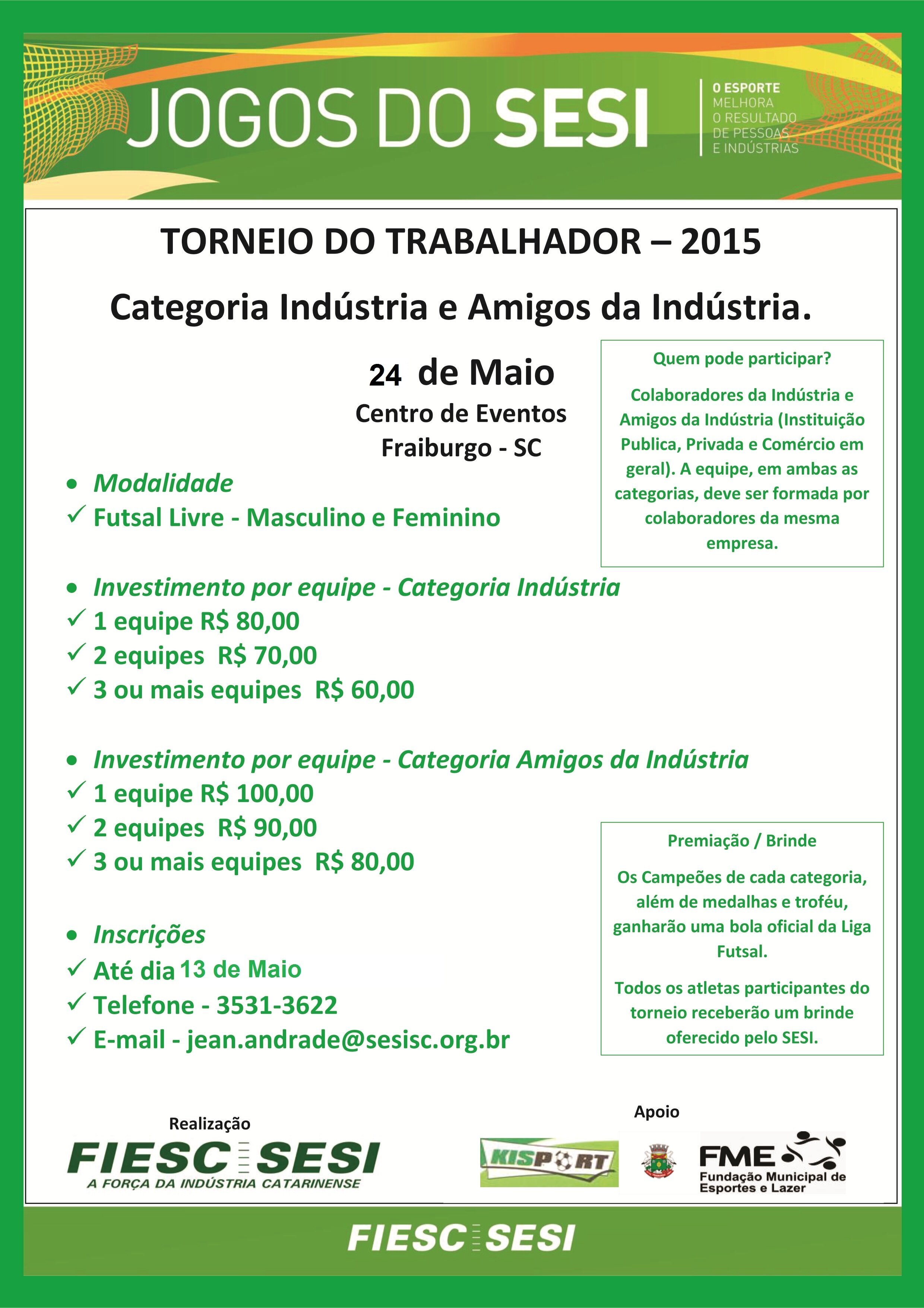 Aconteceu no dia 29 de Maio, no Centro de Eventos da cidade de Fraiburgo-SC a edição 2016 do Torneio do Trabalhador. Destaque para as empresas BRF e Fiola que sagraram-se campeãs.
